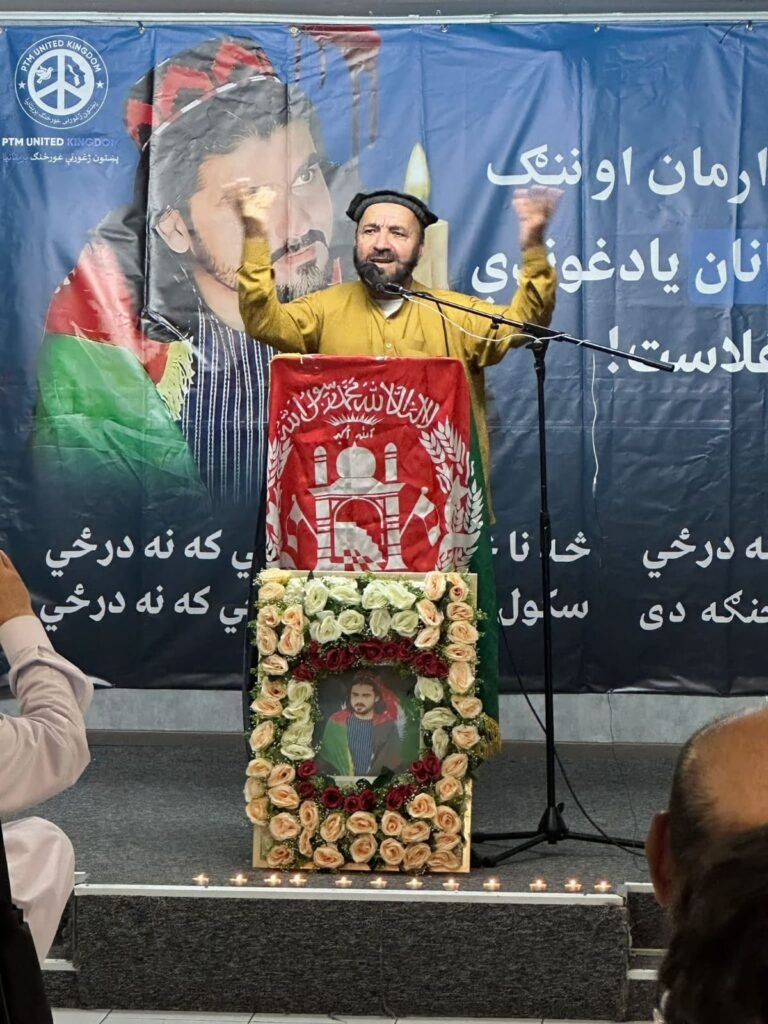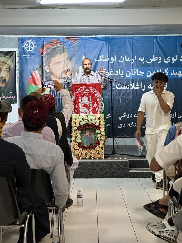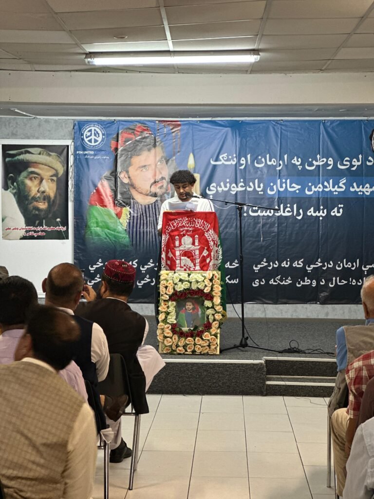 Speakers paid heartfelt tribute to Shaheed Gilaman’s sacrifice and condemned the continued oppression faced by the Pashtun people in Pakistan. Prayers were also offered for national martyr Molana Khanzeb and celebrated poet of national consciousness, Matiullah Turab.